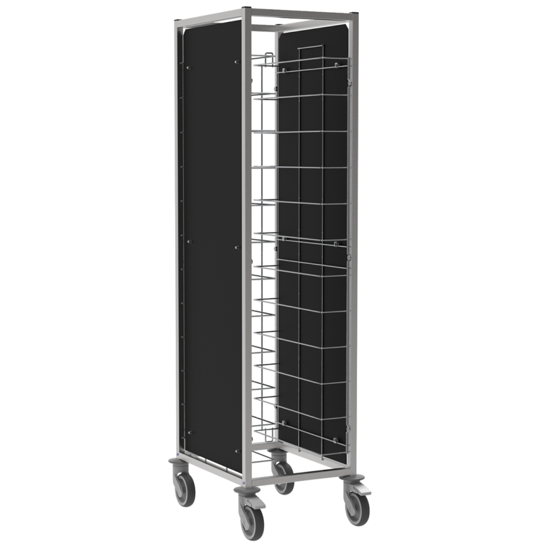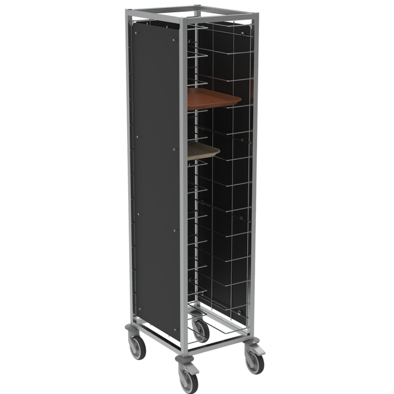 Ces chariots sont adaptés au rangement de plateaux de cafétéria avec des dimensions de 270 à 379 mm de largeur et jusqu’à 510 mm de profondeur, permettant une organisation optimisée et un transport facile. Pour ajouter une touche esthétique et pratique, nous proposons en option des panneaux de côtés décoratifs en résine « grainée », qui renforcent non seulement l’apparence du chariot, mais aussi sa résistance à l’usure.